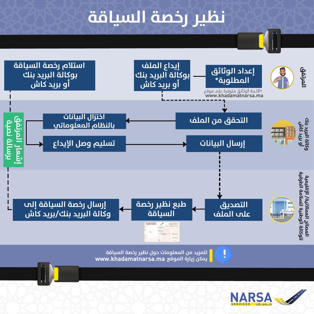 لائحة وكالة بريد بنك و بريد كاش التي توفر خدمات الوكالة الوطنية للسلامة الطرقية متوفرة على الرابط التالي : www.narsa.ma/abb